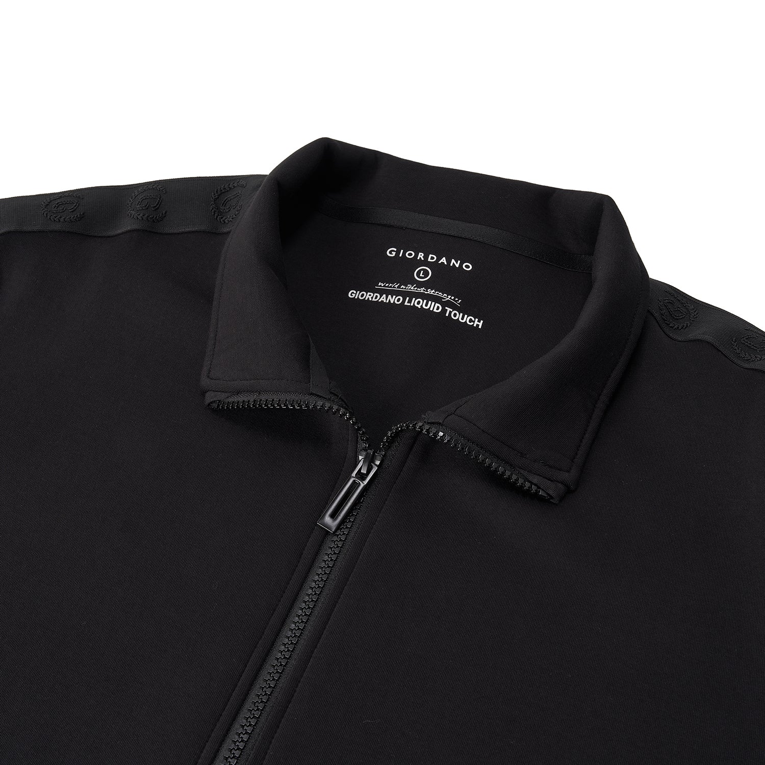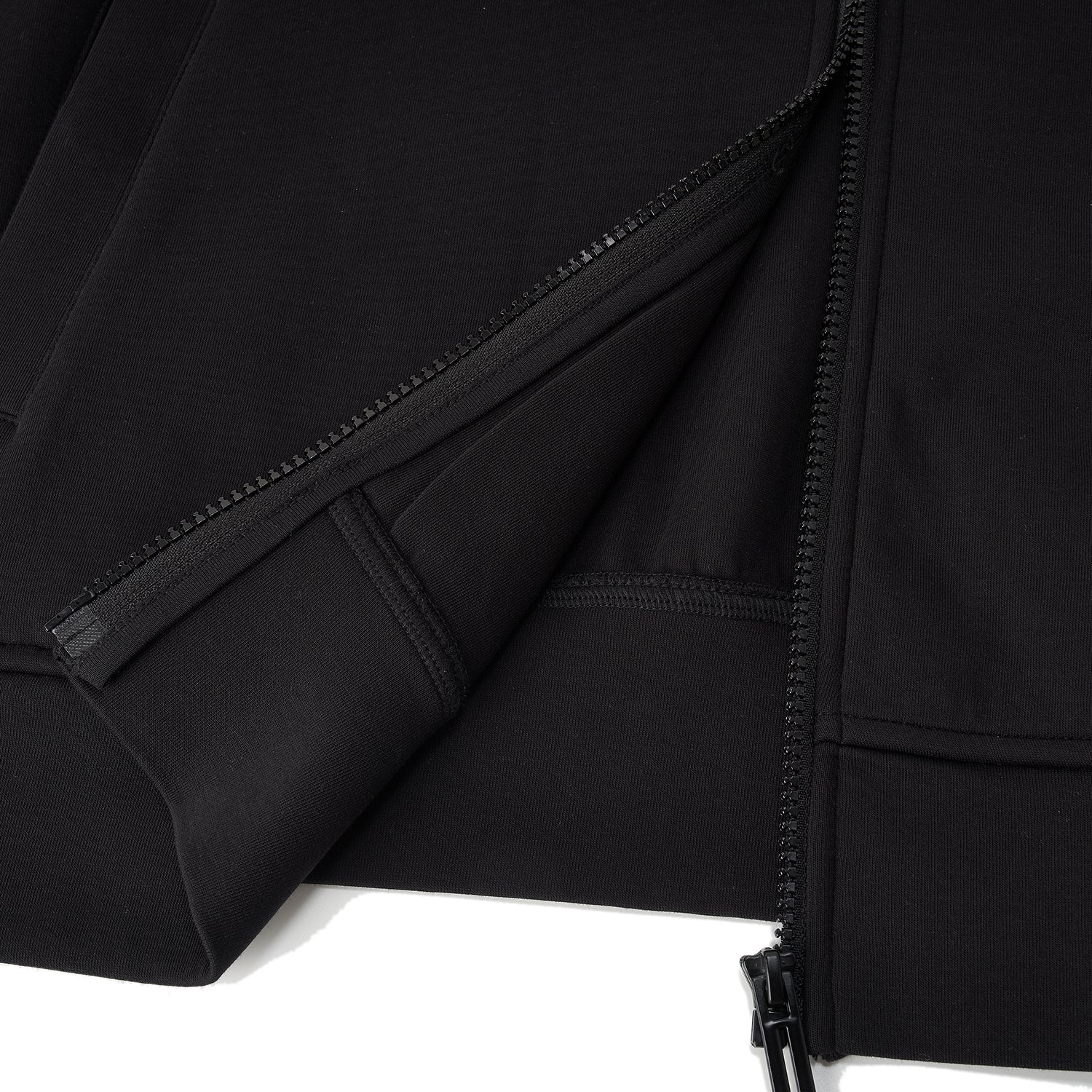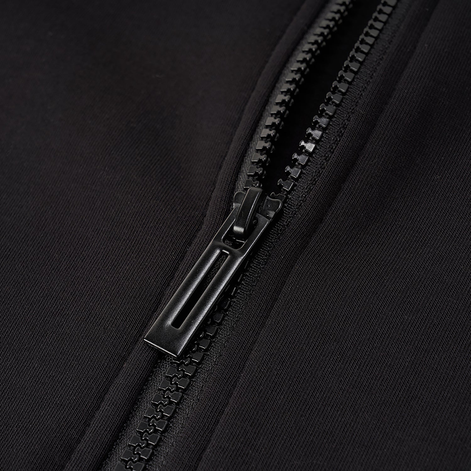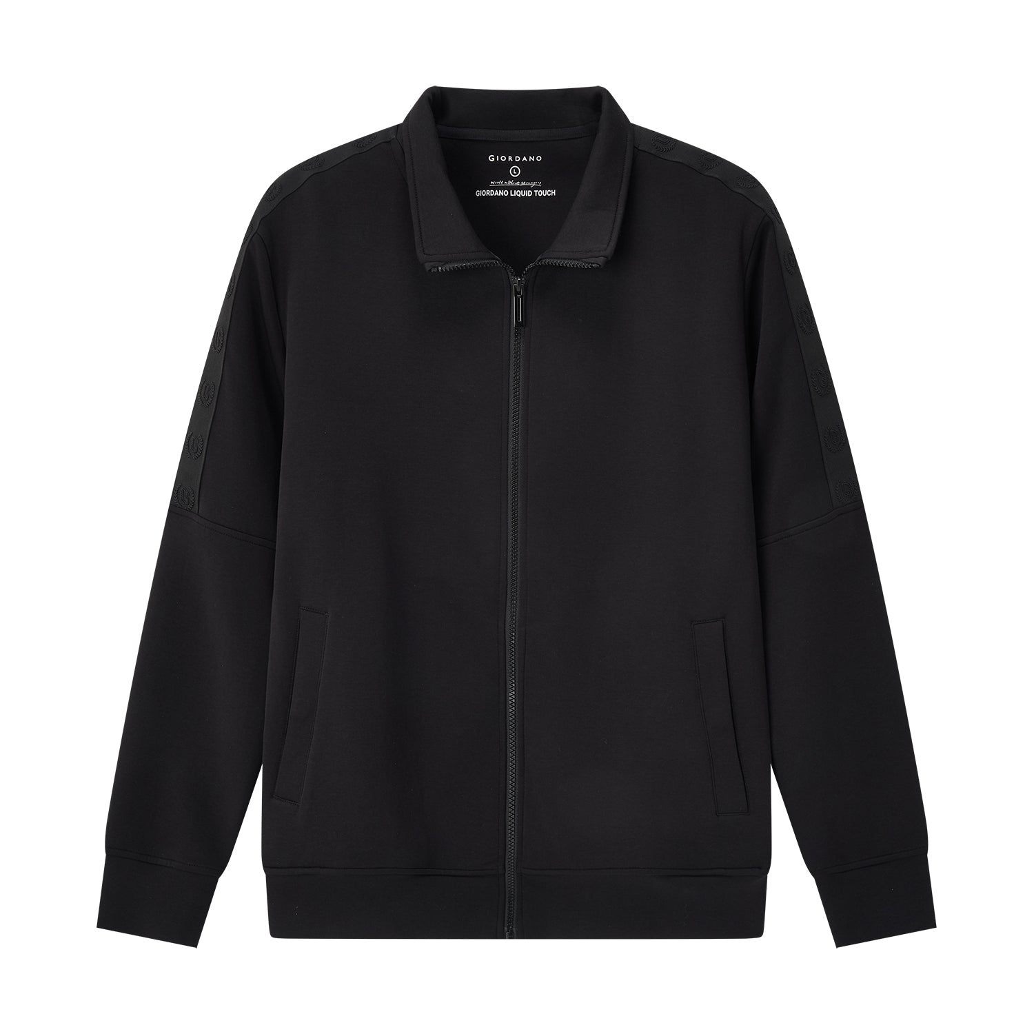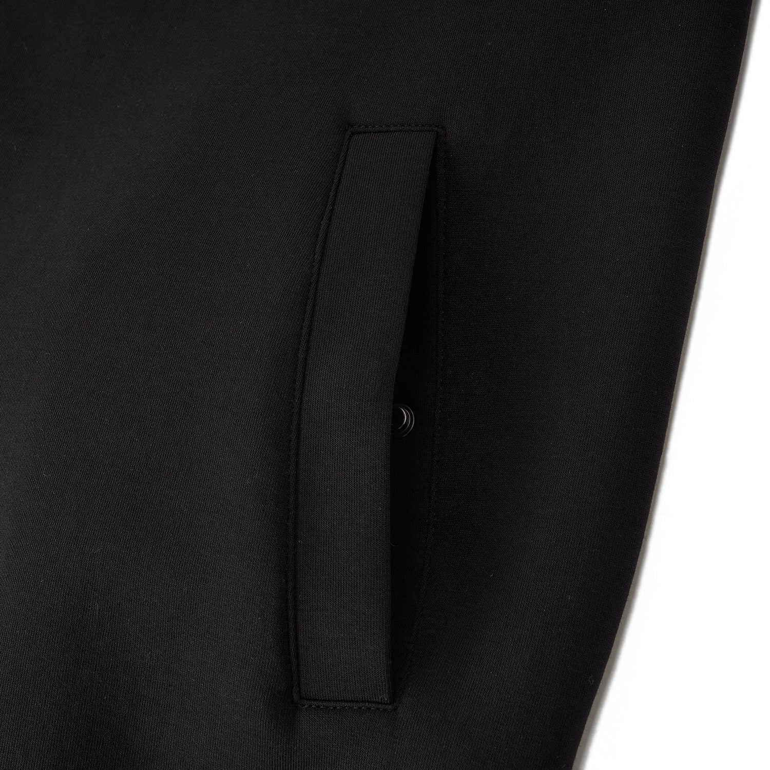 This relaxed-fit jacket is crafted from a soft interlock knit blend of cotton, polyester, and elastane for comfortable movement and everyday wear. Designed with a full front zipper and long sleeves, it offers easy layering during cooler FW25 days. The fabric provides a smooth hand feel while maintaining structure and flexibility. Finished in Signature Black for a clean, versatile look. Available in sizes S to XL.