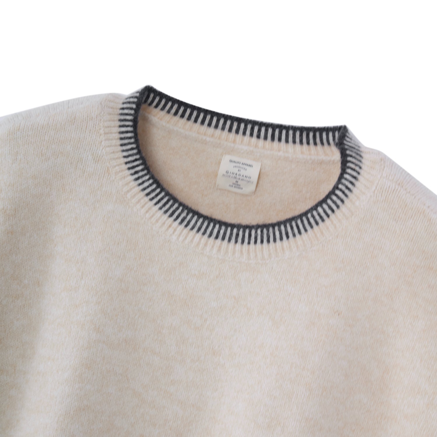 This loose-fit crew neck sweater is designed for comfortable everyday wear in the FW25 season. Crafted from a soft acrylic-blend knit, it provides warmth with a lightweight feel and gentle stretch. The long sleeves and relaxed silhouette make it easy to layer, while the ribbed hem adds subtle structure to the shape. Finished with a garment-washed look, it delivers a clean, casual aesthetic suitable for daily styling. Available in Heather Creamware, sizes S to XL.