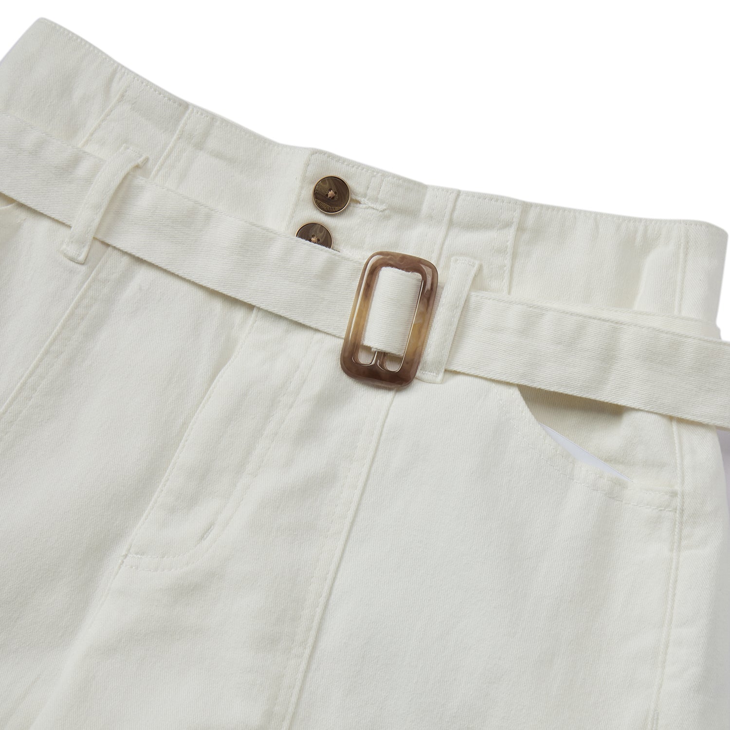 Mid Rise Relax Fit White Denim Shorts